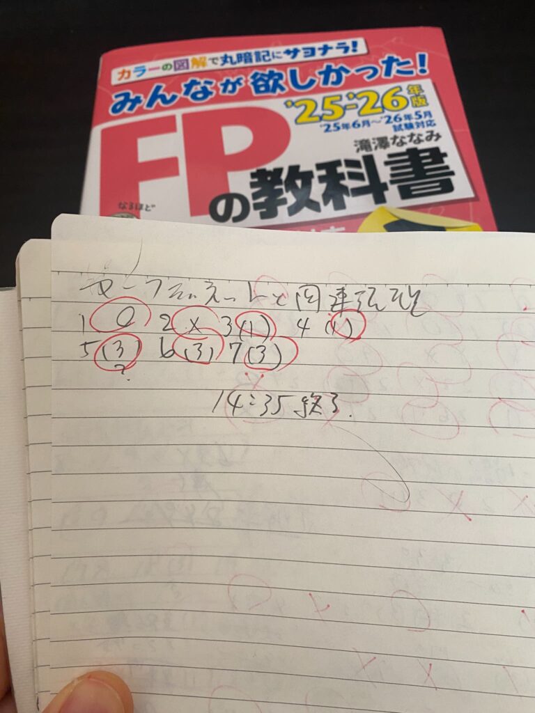 勉強した内容は、昨日の続きで生命保険など。教科書を読んでから問題を解き、最後は実技もやった。やっていて気づいたのは、保険はもしかしたら自分の得意分野かもしれない、ということだ。一番苦手意識があった分野なのに、なぜか正解率が高い。たぶん、実際に経験している内容が多いからだと思う。
